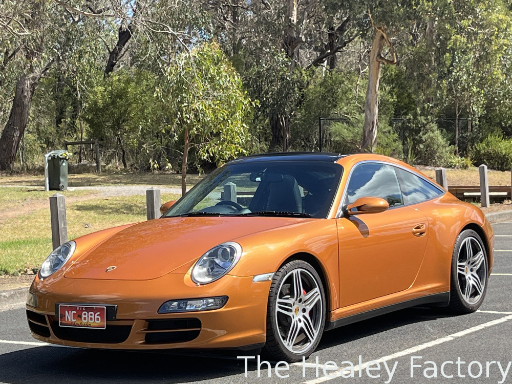 This Hong Kong delivered Targa was delivered new by Porsche Centre Hong Kong on 29 June 2007 and has travelled a low ~60,000 km in its 18 years, imported to Australia in 2022. The Porsche presents in the striking colour combination of Nordic Gold metallic sitting on 19” Turbo style wheels shod with Michelin Pilot Sport tyres. The rear bodywork on the 4S Targa is 44mm wider than the base model Carrera.